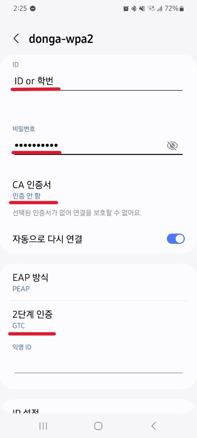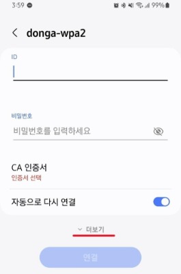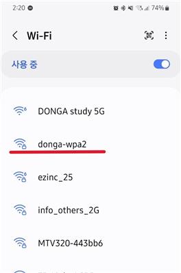 안드로이드 스마트폰 donga-wpa2 Wi-Fi 설정 방법입니다