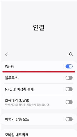 1. 2. ‘연결’ 화면에서 < 그림 2 >의 ‘Wi-Fi’ 설정에 들어갑니다.