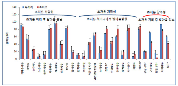 산림종자유전자원의 초저온 감수성 평가